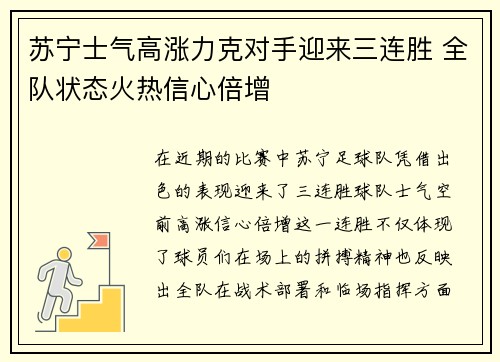 在近期的比赛中,苏宁足球队凭借出色的表现...
